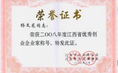 2008年度江西省優(yōu)秀創(chuàng)業(yè)企業(yè)家稱號(hào)