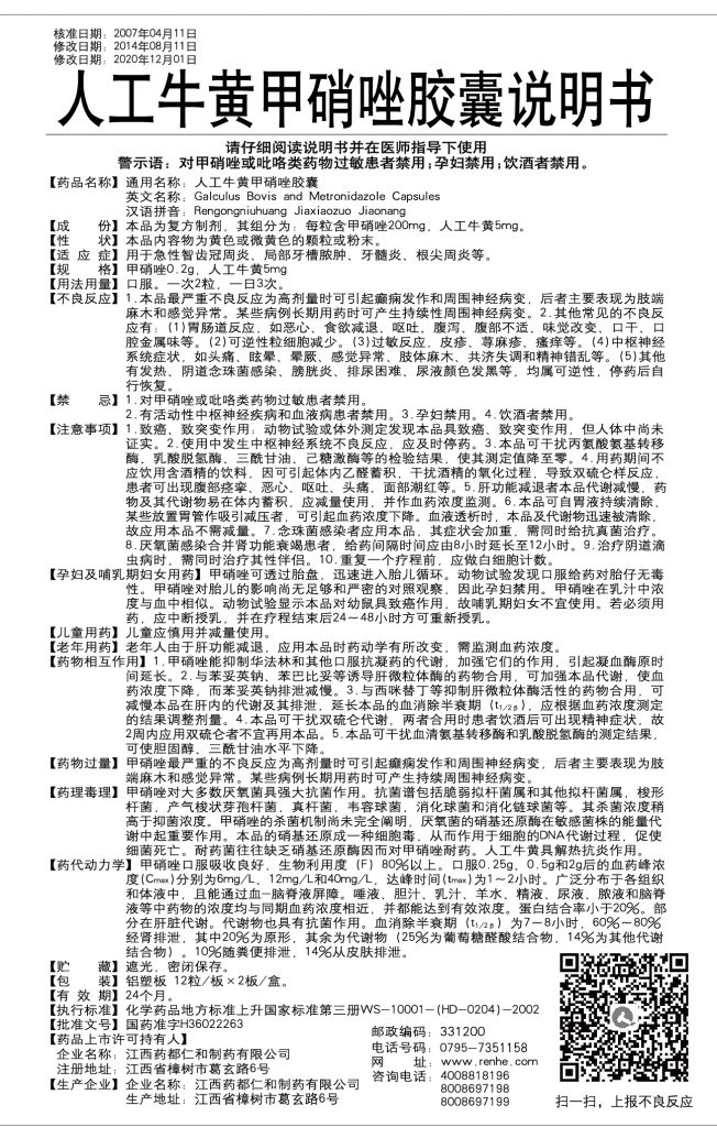 人工牛黃甲硝唑膠囊