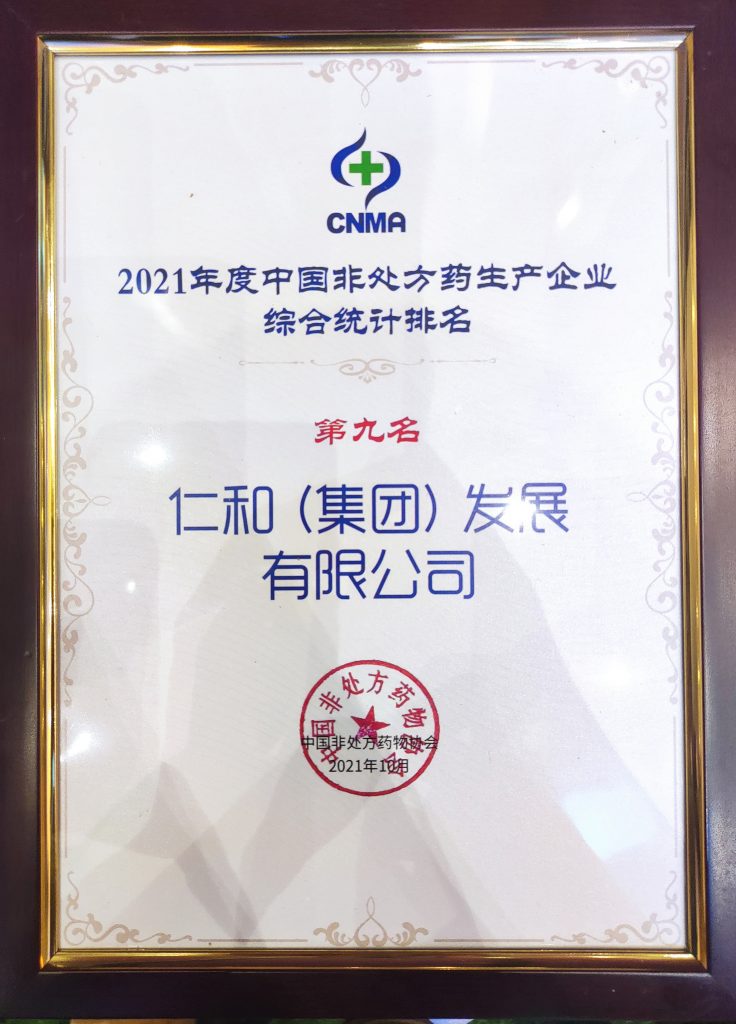 仁和集團榮獲2021年度中國非處方藥生產企業綜合統計排名第九名 發布時間: 2021年10月20日 15:08:48 閱讀量: 11,443 下一篇:仁和集團榮膺“新中國成立70周年醫藥行業標桿企業”上一篇:仁和集團再次榮登中國醫藥商業百強企業
