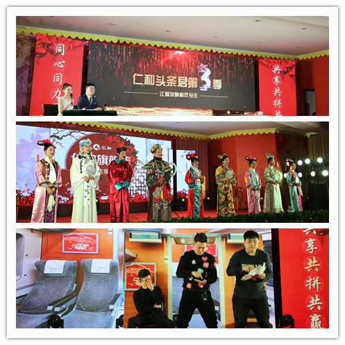 晚會節目全部由子公司自編自導自演,形式多樣,熱情活潑。樟樹制藥選送舞蹈《紅星高照》拉開了晚會序幕,紅紅火火的喜慶燈籠以及歡快明亮的音樂歌舞映照出仁和事業蒸蒸日上、節節高升的美好景象。藥品普法宣傳小品《守護健康》表達了仁和集團踐行“做好藥,做良心藥”的初心使命,始終堅持把藥品質量擺在重中之重的位置。建黨百年獻禮作品《軍民慶豐收》《閃亮少年志》《再唱山歌給黨聽》,歌頌了黨的光輝歷史和輝煌成就,表達了仁和對黨和政府長期以來關心支持的濃濃感恩之情。語言類節目《仁和頭條君之讓愛發酵相伴巾生》《把真健康帶回家》《仁和的奮斗者》,回顧總結了今年仁和產品及營銷特色,演繹出營銷人員在艱難的市場環境中步步成長的辛酸歷程。《仁和直播Show Time》《高鐵奇遇》等作品,題材新穎,節目內容貼合當前企業發展方向,引得臺下觀眾掌聲不斷。大型歌舞類節目《玉峽情歌》《煙雨江南》《心隨舞動》以及演奏類節目《New Boy》《云煙成雨》,傳統與現代相結合,古典與民族相照應,謳歌時代,頌揚祖國,展現出一派青春活力、朝氣蓬勃的新氣象。