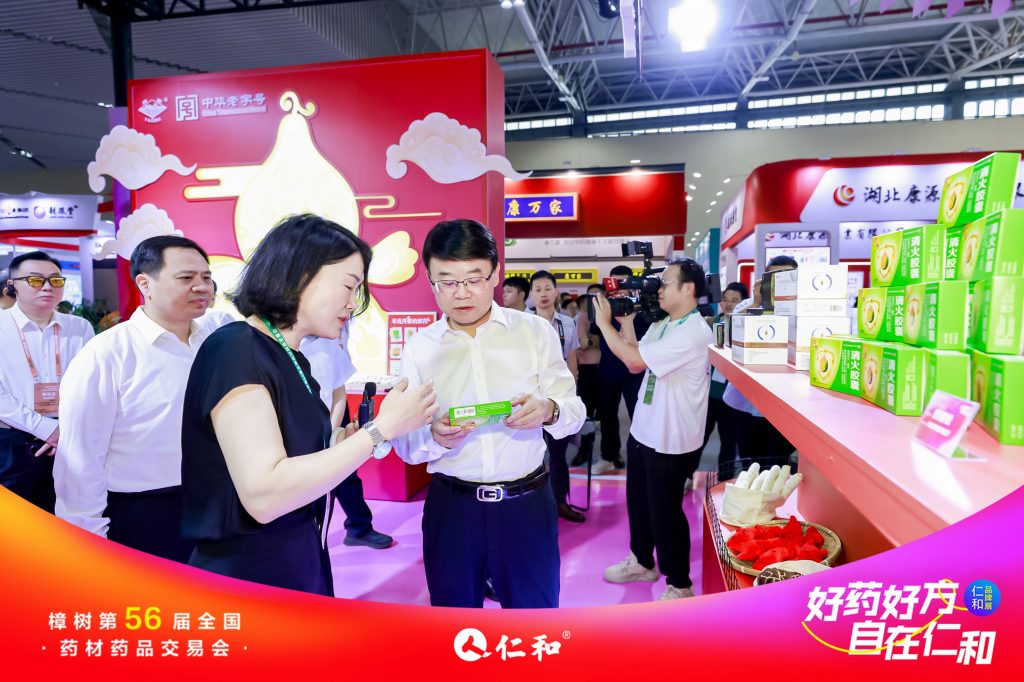 開幕式結束后,楊文龍董事長盛情邀請出席開幕式的國家、省、市各級領導蒞臨仁和個性化展位視察。展位以“好藥好方,自在仁和”為主題,通過傳統文化元素與智能化展示相結合的方式,全面呈現了仁和在中醫藥創新、品牌建設、數字化應用等領域的最新成果。集團董事李欣詳細介紹了展位設計與展示內容,各級領導認真聽取后對仁和堅守制藥初心、推動產業升級取得的成效給予充分肯定,并勉勵企業繼續發揮龍頭帶動作用,為中醫藥產業高質量發展作出更大貢獻。